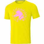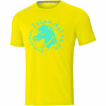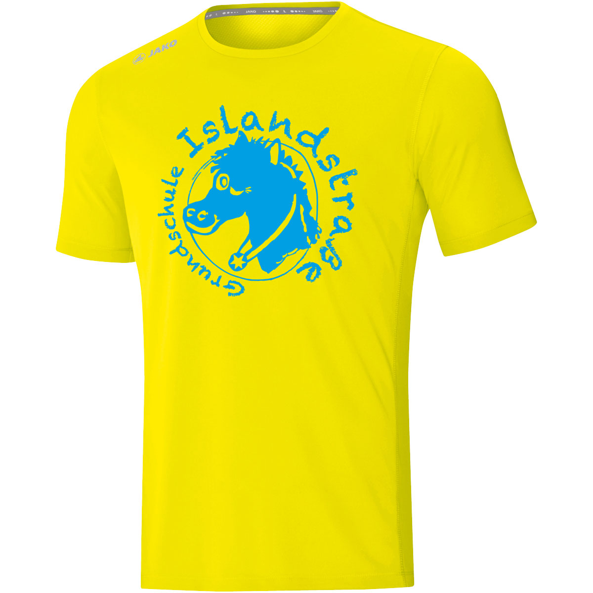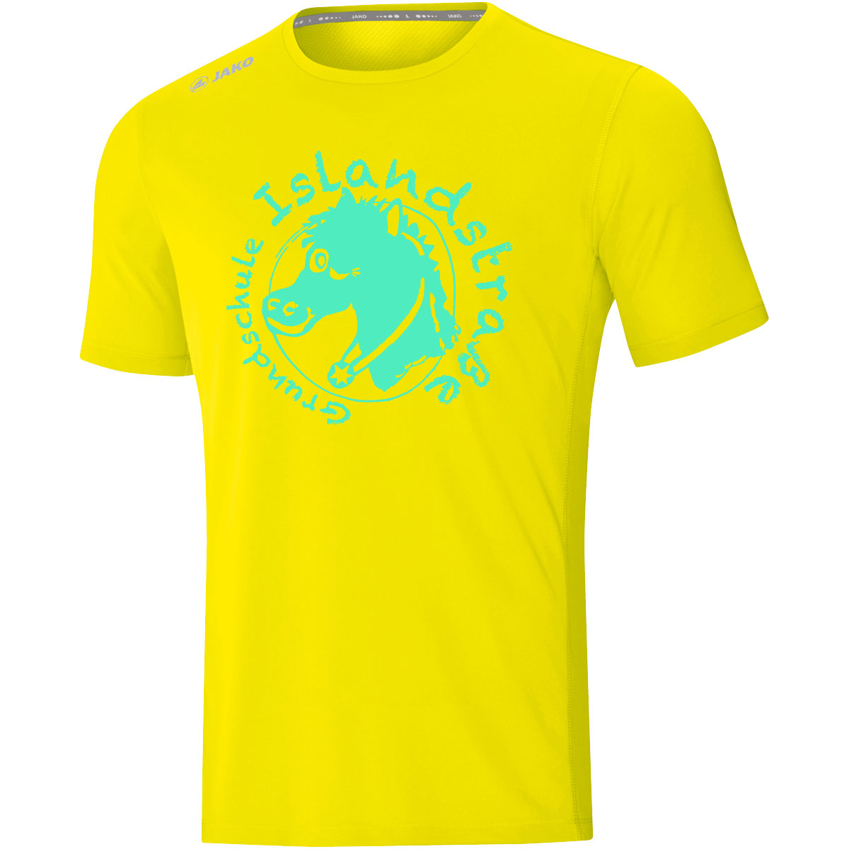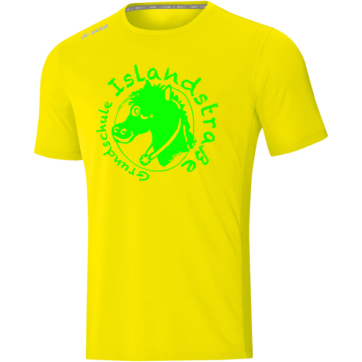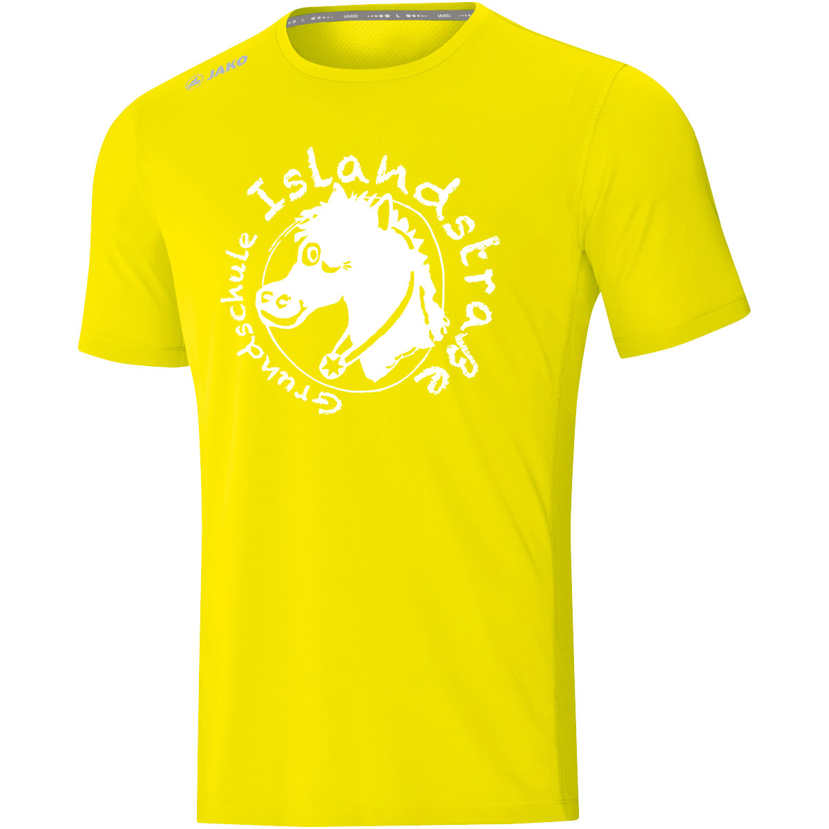 Das Rückenteil besteht aus einem atmungsaktiven Mesh – Einsatz, der beim Sport entstehende Feuchtigkeit wie Schweiß von der Haut weg transportiert, damit sie an der Oberfläche des Textilmaterials verdunsten kann. Auf diese Weise garantiert das Oberteil der Trägerin oder dem Träger optimale Voraussetzungen für den Lauf. Das Laufshirt ist im typischen Look gestaltet.