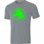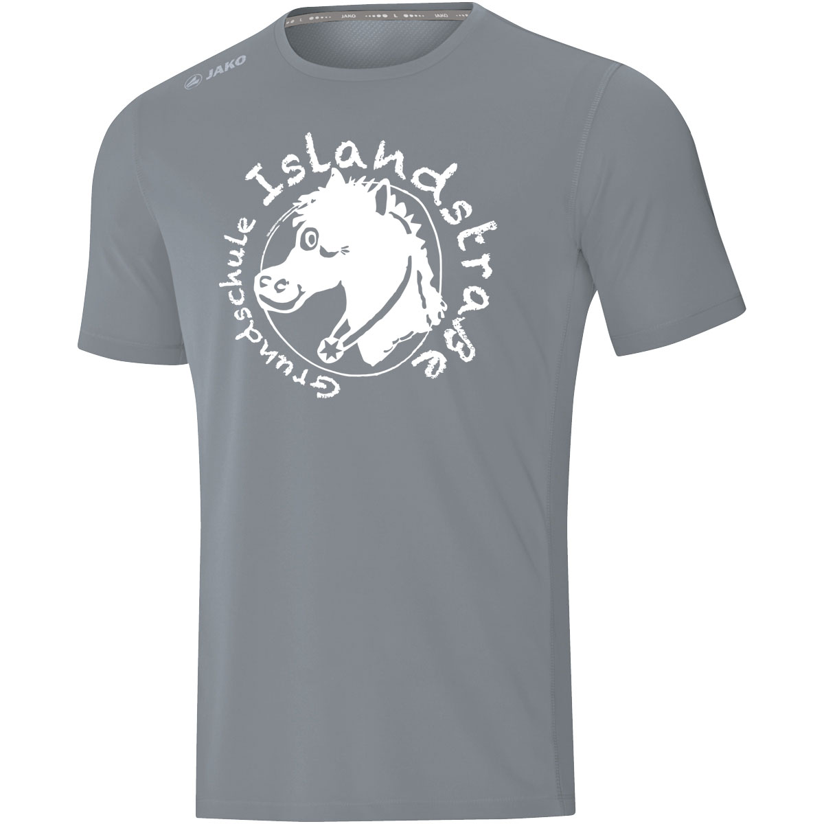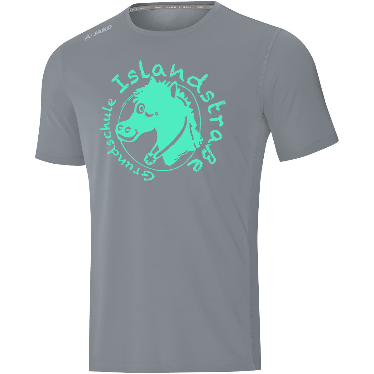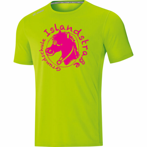 Das Rückenteil besteht aus einem atmungsaktiven Mesh – Einsatz, der beim Sport entstehende Feuchtigkeit wie Schweiß von der Haut weg transportiert, damit sie an der Oberfläche des Textilmaterials verdunsten kann. Auf diese Weise garantiert das Oberteil der Trägerin oder dem Träger optimale Voraussetzungen für den Lauf. Das Laufshirt ist im typischen Look gestaltet.