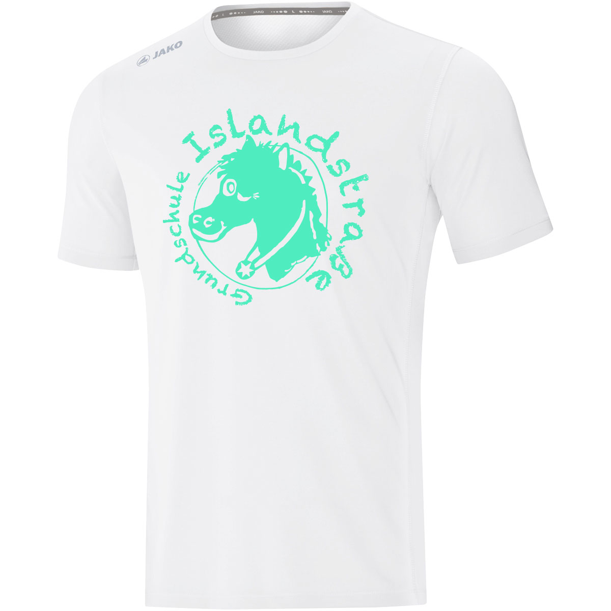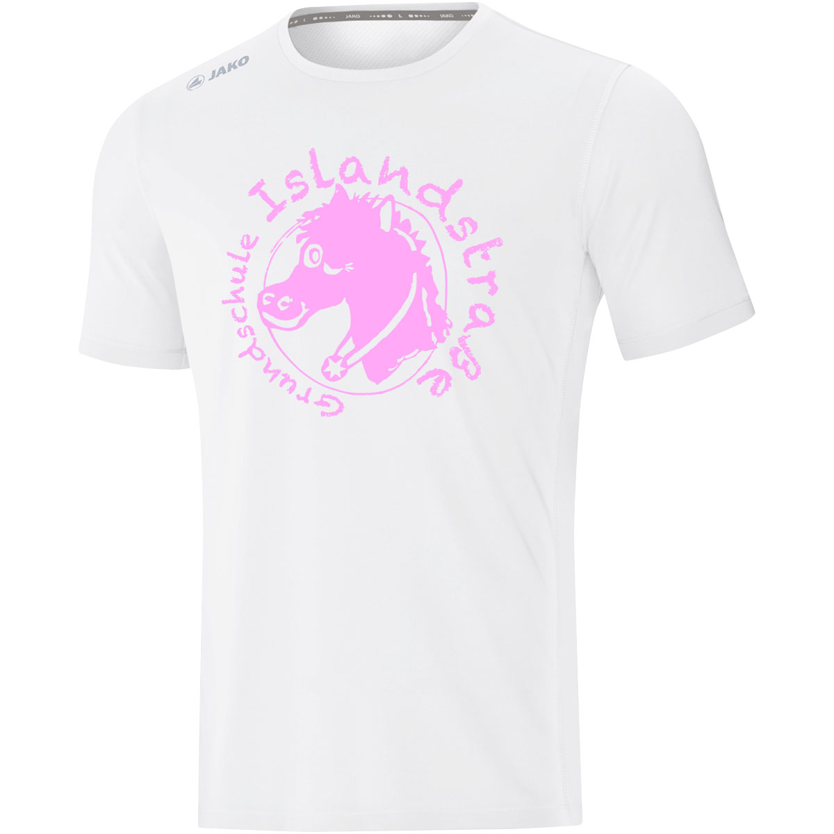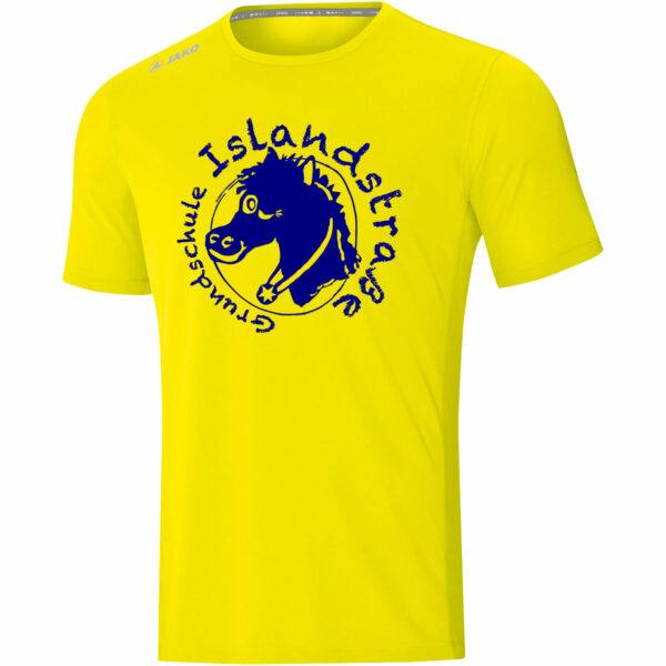 Das Rückenteil besteht aus einem atmungsaktiven Mesh – Einsatz, der beim Sport entstehende Feuchtigkeit wie Schweiß von der Haut weg transportiert, damit sie an der Oberfläche des Textilmaterials verdunsten kann. Auf diese Weise garantiert das Oberteil der Trägerin oder dem Träger optimale Voraussetzungen für den Lauf. Das Laufshirt ist im typischen Look gestaltet.