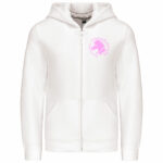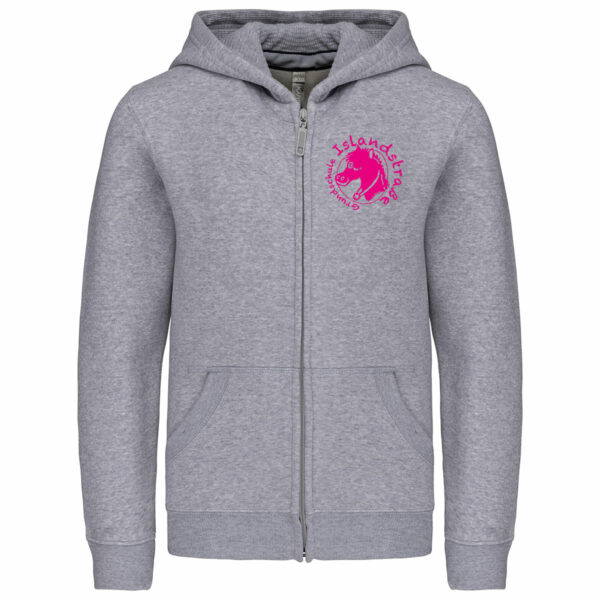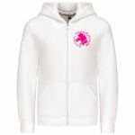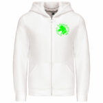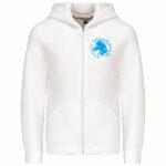 80% gekämmte Baumwolle / 20% Polyester. Gebürstetes Fleece. Verstärktes Kontrast-Nackenband (Heather Grey für alle Farben, Middle Grey für Oxford-Grey). Kängurutasche. Gerippt an Bund und Saum. Gefütterte Kapuze. Reißverschluss. Zertifizierte STANDARD 100 by OEKO-TEX®N° CQ1007/7, IFTH.